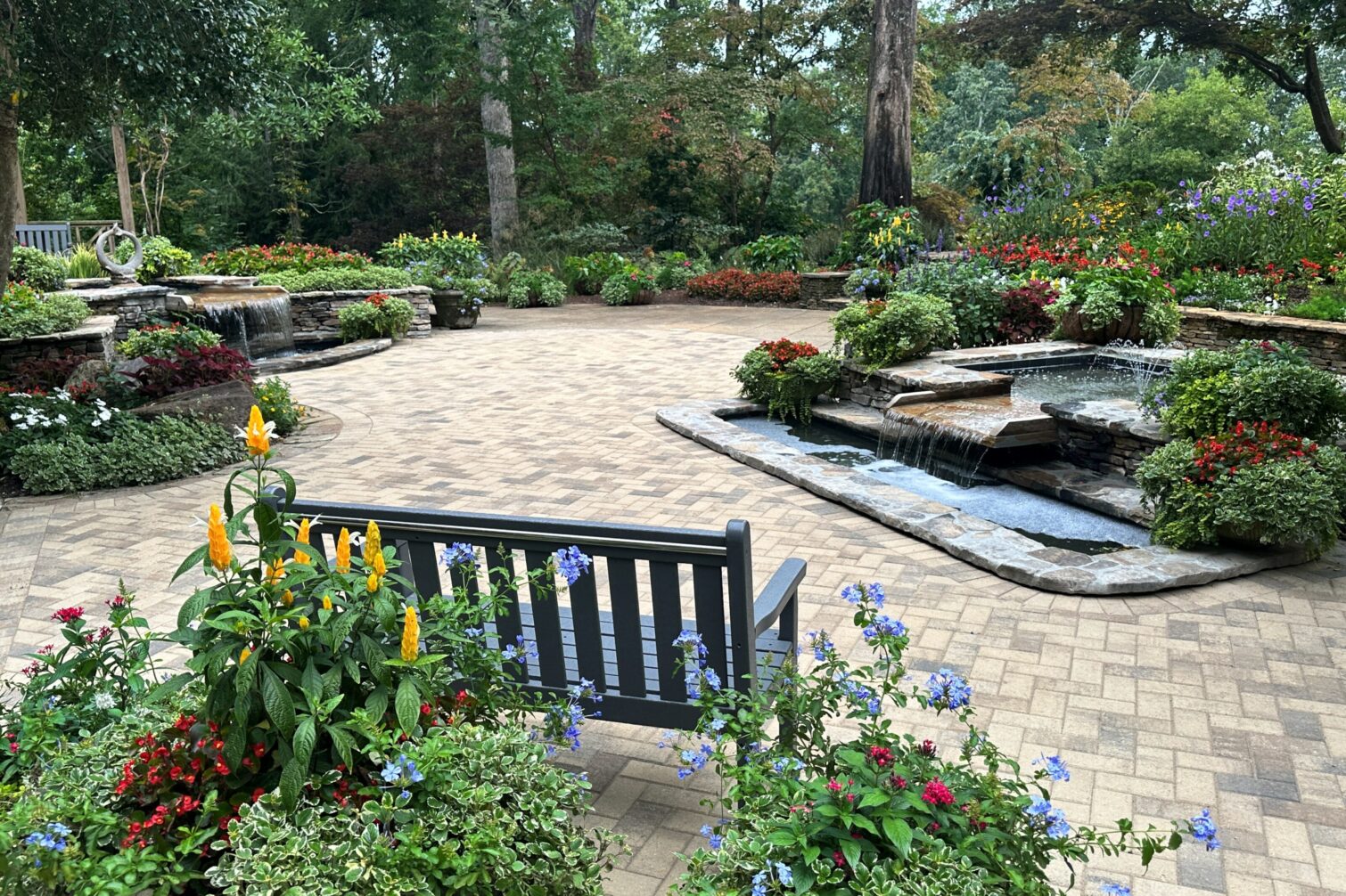 The fountains and surrounding Gardens consist of several raised flower beds that contain seasonal flower changes.