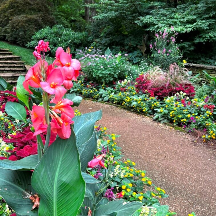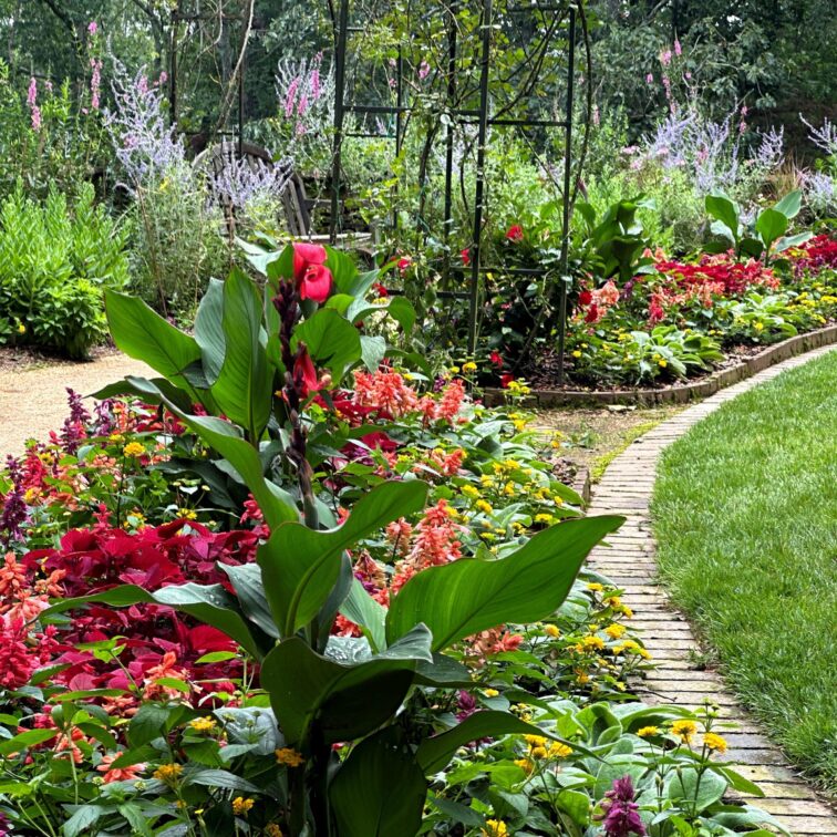 Cala Lilies, Russian Sage, Fox Glove, Pansies (winter), Coleus, Salvias, Lantana, Spider Flowers are just some of the flowers you will see in this Garden through the seasons.